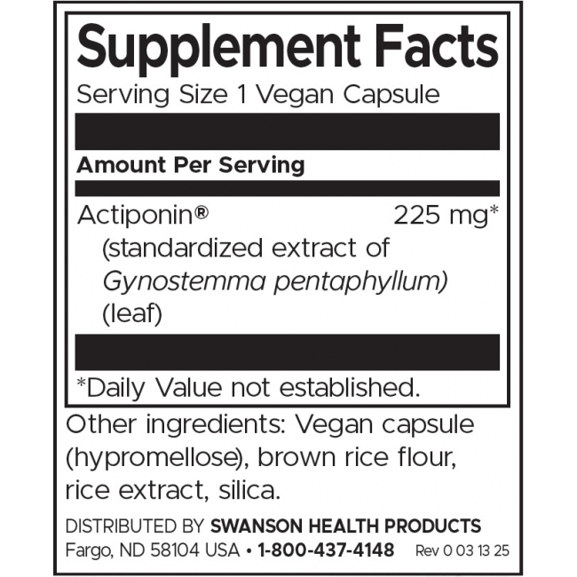 | Актипонин® (Стандартизиран екстракт от Gynostemma pentaphyllum) (листа) | 225 мг | 450 мг |