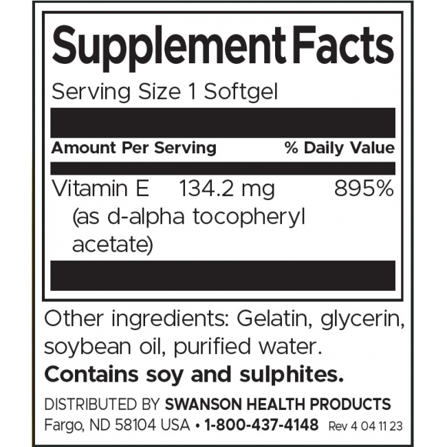 Витамин Е е обект на сериозни проучвания през последните години благодарение на ценната хранителна подкрепа, която осигурява за здравето на сърдечно-съдовата система, но той е повече от витамин за сърцето. Антиоксидантните свойства на Витамин Е помагат за защитата на жизненоважни тъкани в цялото тяло от разрушителното действие на свободните радикали. Натуралният Витамин Е на Суонсън доставя 134,2 mg с всяка капсула.