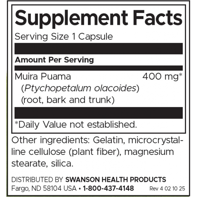 Бразилците я наричат „дърво за потентност“. Муира Пуама е бразилска билка, която традиционно се ползва за удължаване на сексуалната активност и повишаване на либидото както при мъжете, така и при жените. Европейците я използват за облекчаване на менструалния дискомфорт и насърчаване на физическата възбуда. Ние предлагаме пълен спектър от билката директно от дъждовните бразилски гори, за да гарантираме най-доброто качество и ефективност.
