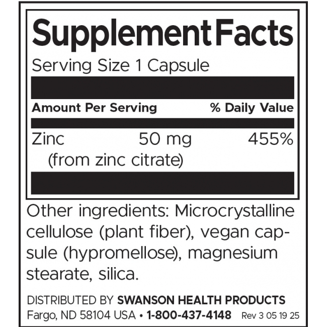 • Всяка капсула съдържа 50 мг Цинк (от цинков цитрат)